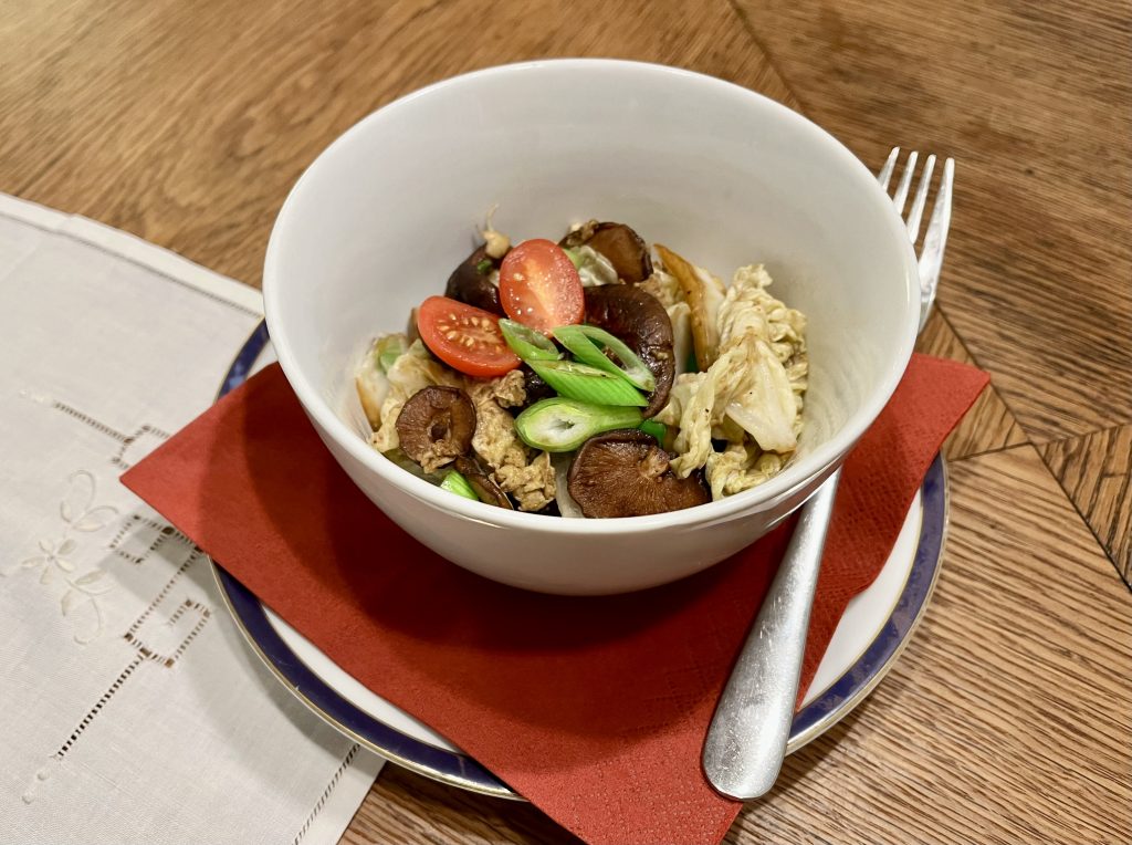 Hier noch eine Variante mit Shitake-Pilzen und Frühlingszwiebeln.