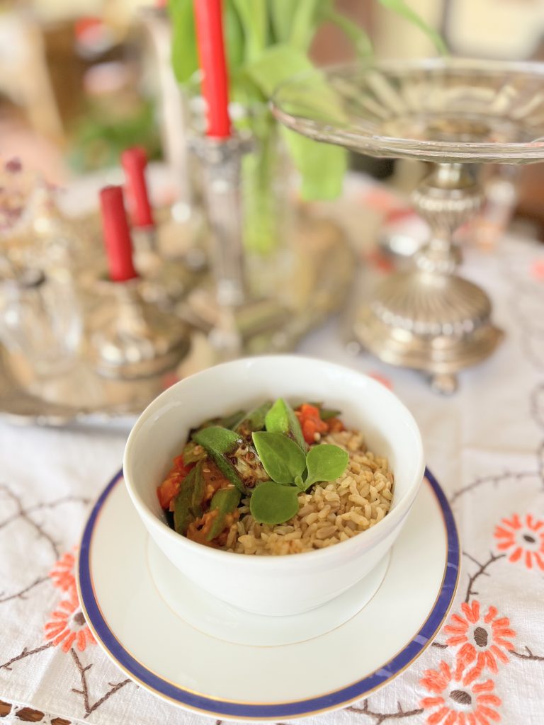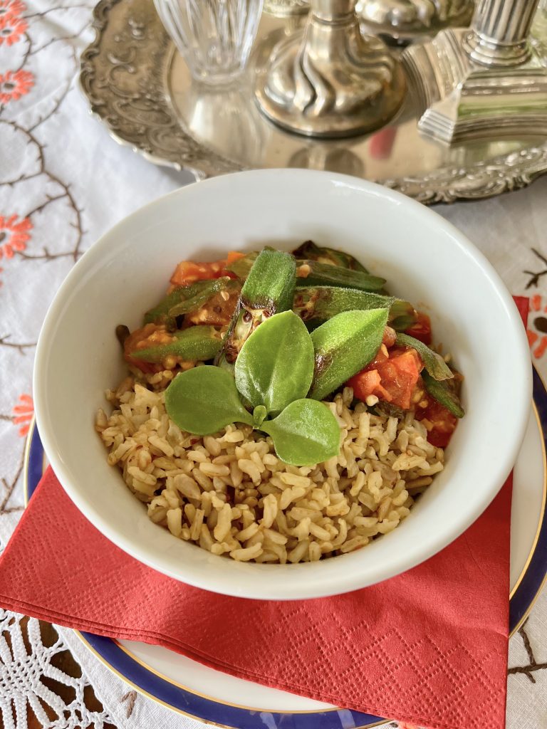Gebratene Okra mit Reis